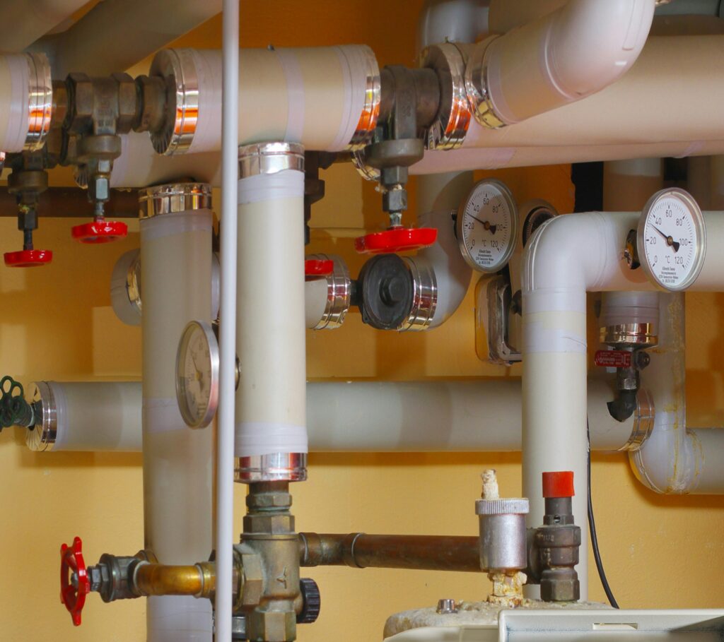 Modernisierte Heizungsanlage mit neu installierten Leitungen für eine zuverlässige Wärmeversorgung.